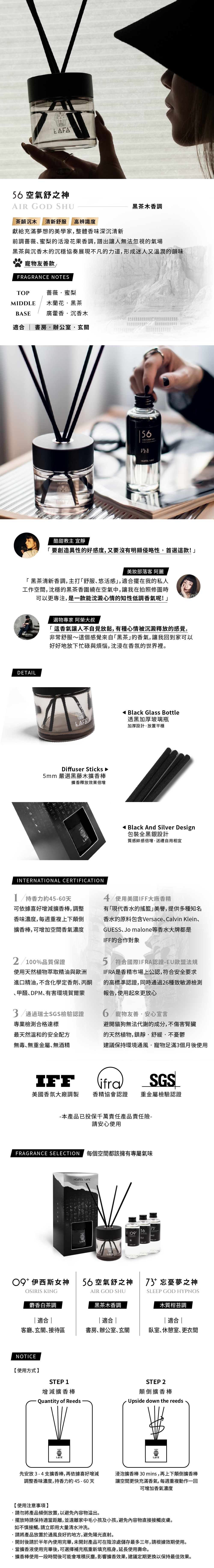 禮盒包裝內含物:品牌加厚玻璃瓶x1、質感黑木蓋x1、擴香補充瓶150mlx1、黑色藤木擴香棒x4