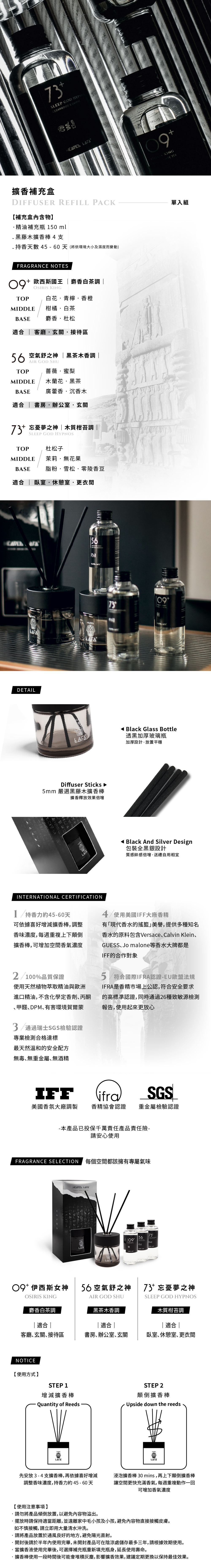 補充盒含物:擴香補充瓶150mlx1、黑色藤木擴香棒x4