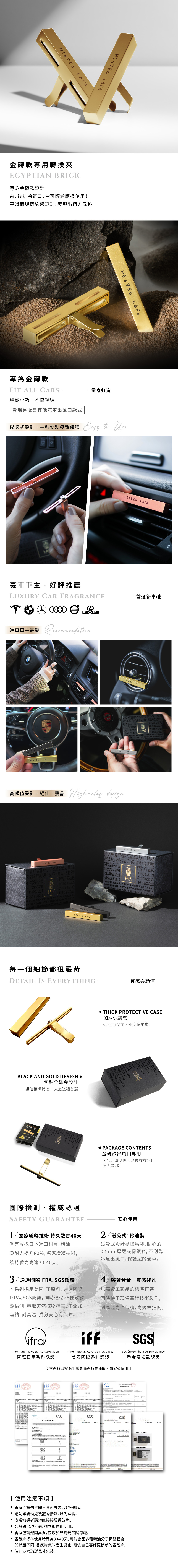 包裝內含物:一般款金磚車夾x1、燙金說明書x1