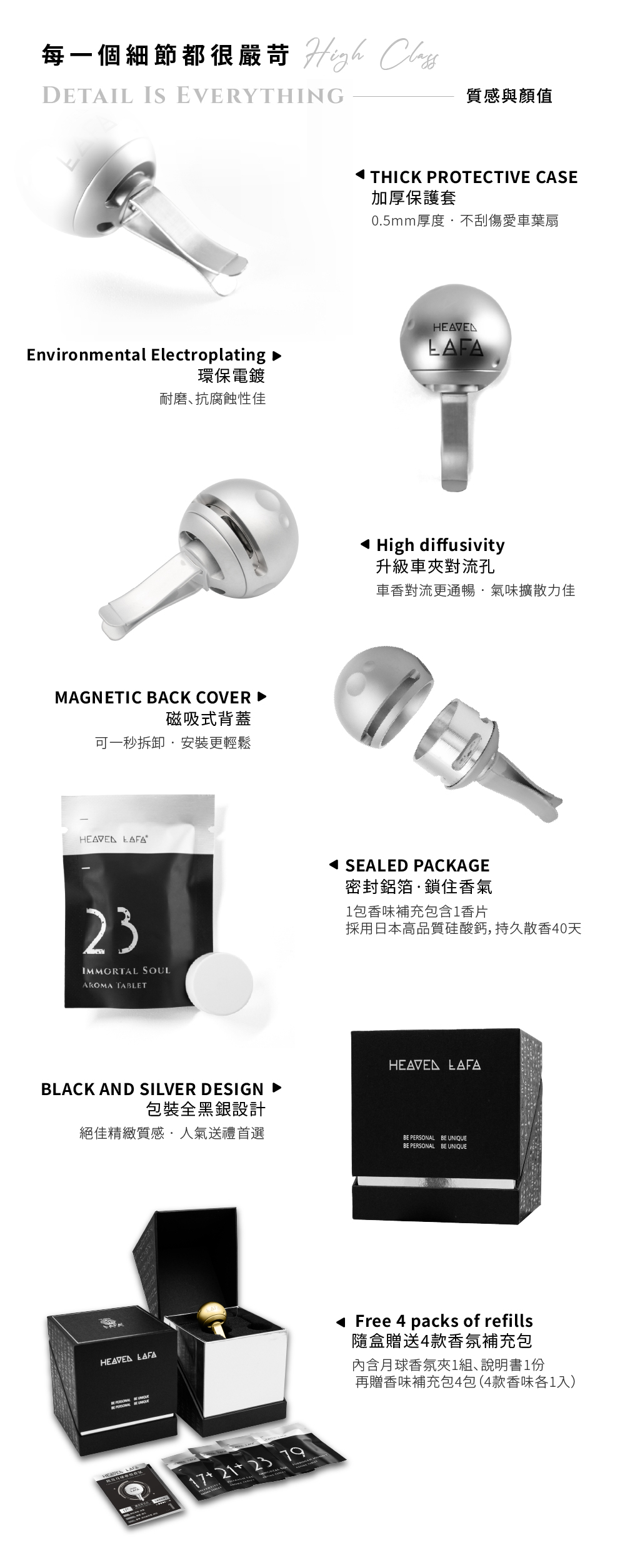 包裝內含物:月球香氛夾x1、香薰片補充包x4款、說明書x1